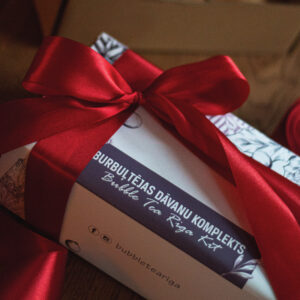 Komplektā iekļauts: Dubultā 1-2 piena burbuļtējas garšas, bobas vai tapiokas pērlītes, tēja, saldinātājs, instrukcija, salmiņš, glāzīte.